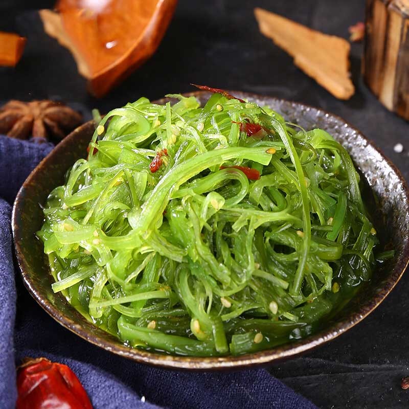裙带菜的话就比海带要薄上很多了,口感的话就是没有海带那么的爽脆但是却多了一份绵软。海带的话我们在市面上会看到各种各样的形状,有海带丝、海带结、海带片等,都可以用来凉拌,煮汤。裙带菜的话就是一般都是淡干裙带菜还有咸干裙带菜,也可以用来凉拌,煮汤。虽然它们的吃法差不多,但是它们的营养价值有着很大的不同。海带具有低热量、蛋白丰富的特点,具有降血脂,降血糖,抗肿瘤等效果,对于调节免疫系统、凝血障碍等问题也都有很好的改善效果。裙带菜中含有丰富的微量元素和矿物质,以及维生素A、B、C等物质,被称为聪明菜、美容菜,裙带菜的含碘量也多于海带,我们都知道,碘对于儿童的骨骼发育和智力发育都有很大的帮助。同时裙带菜也含有丰富的钙和锌,经试验证明含有的钙质是牛奶的10倍,维生素C是高达相当于21斤的菠菜,可见裙带菜的营养之丰富,具有减肥、清理肠道、以及养颜护肤,抵抗衰老的效果,很受女性喜爱。