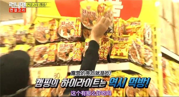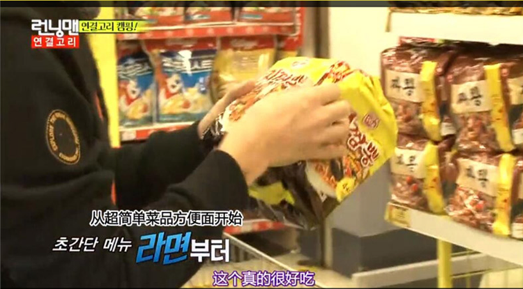 这款方便面就不倒翁的真海鲜方便面。当时在韩国跑男节目中出现的一款方便面。有一说一,这款方便面是真的好吃哦。在我们的图片中可以看出刘在石和哈哈两人都在抢着吃。并且这也是“电梯战神”黄政民代言的一款方便面哦!!